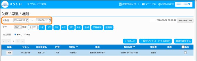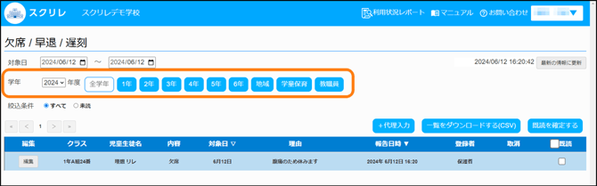 4.欠席/遅刻/早退の連絡状況を確認する